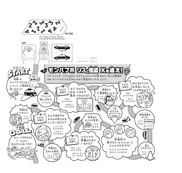 錠剤の個装はパトロールカーや消防車など子どもに人気の車両をデザイン。外箱はぬりえすごろくとして楽しめます。