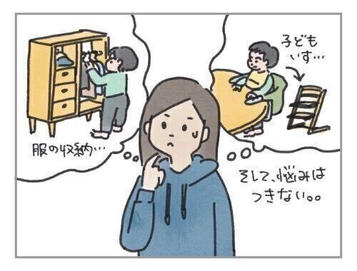 しかし、オモチャが片付いたら終わりかというと、否。子どもの成長につれて、家具の悩みは沼のようにつきません!今は、子ども服の収納を、手の届く場所に設置するべきか悩んでいます。そしたら自分で服とか選べるようになるんですかね・・・?あと、机につけるタイプの子ども椅子がそろそろ重さ的に限界なので、どーするかも考えなくては・・・。うーん、大変!