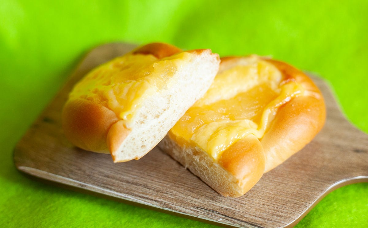 念のため、半分に切ってみたのがこちら。カスタードは天面にのっているだけで、中に何かが入っているわけではなさそうです。まぁ、何かを入れるだけの厚みもありませんしね。