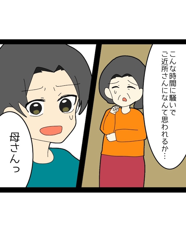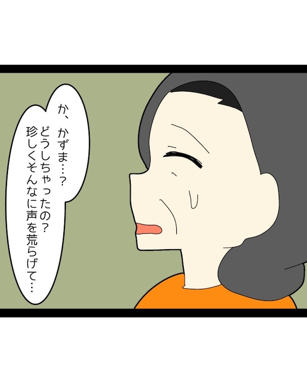 母が自分の妻をいじめていた事実を知り、かずまさんは驚きと失望、そして怒りを抑えきれず声を荒げました。これまで見たことのない息子の態度に、義母も思わず目を見開き、動揺を隠せない様子です。