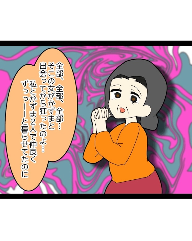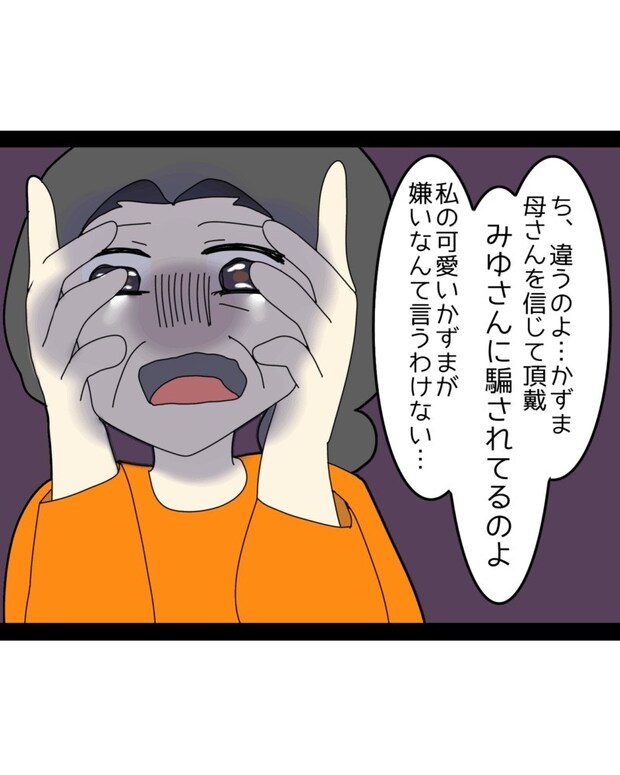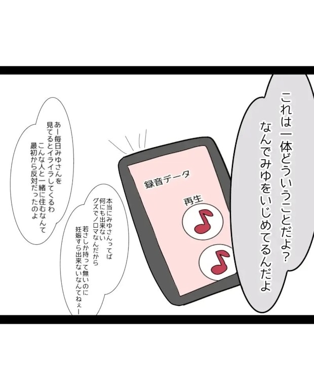 暴言の証拠が残っている以上、もはや言い逃れのできない義母。それでも義母は取り乱し、「悪いのはみゆさんよ!」と狂ったように訴え続けるのでした。