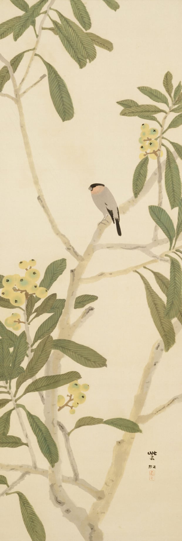今村紫紅《枇杷ニ鷽》 絹本着色・一幅 大正2年(1913) 121.2×41.3cm 横浜美術館