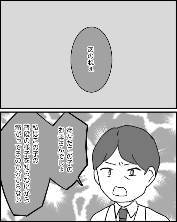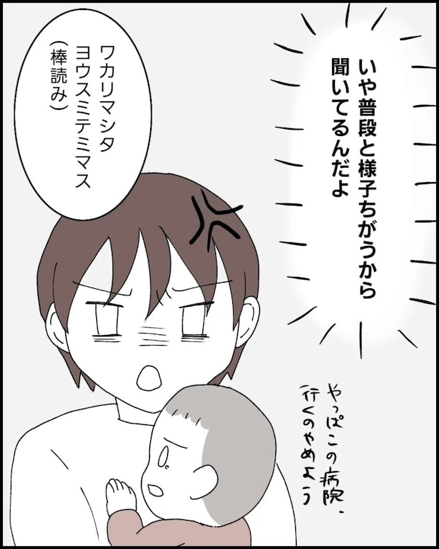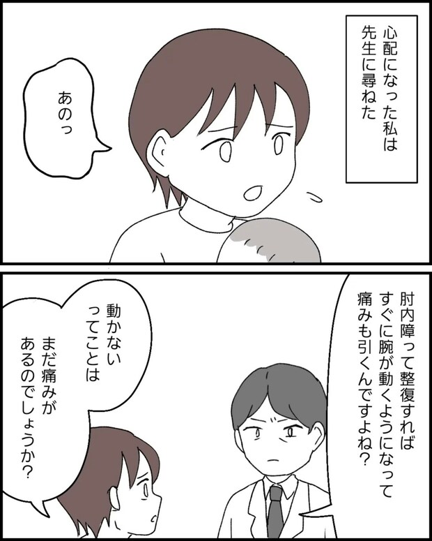 肘内障について質問をしたのに、医師はまったく参考にならない発言をしました。この対応に怒りが込み上げてきたなっぽさん、しかし言い返すことなく気持ちを収めました。