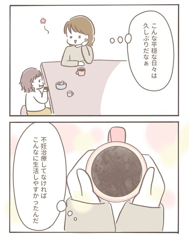 子宮を休めるために2か月間不妊治療を中断しているcoromoさん。今まで抱えてきた全てのモヤモヤから解放されて平穏で幸せな時間を娘さんと共に過ごしています。娘さんももう少しで幼稚園。2人で過ごす時間がもう少しかと思うと寂しく感じてしまうcoromoさんでした。