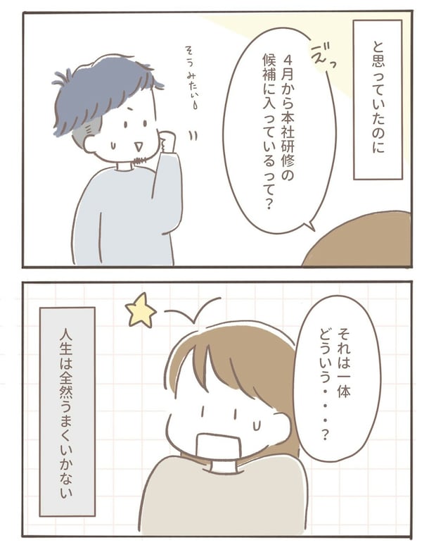 1年半の間、一生懸命不妊治療に取り組んできたcoromoさん。ここで再度不妊治療について考え、娘さんが入園してから心の余裕ができた時にまた再開しようと決断しました。しかし、夫が4月から本社研修候補にあがっているとのことで、また新たな問題が浮上し、人生はうまくいかないと途方に暮れてしまうのでした。