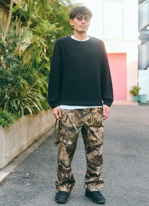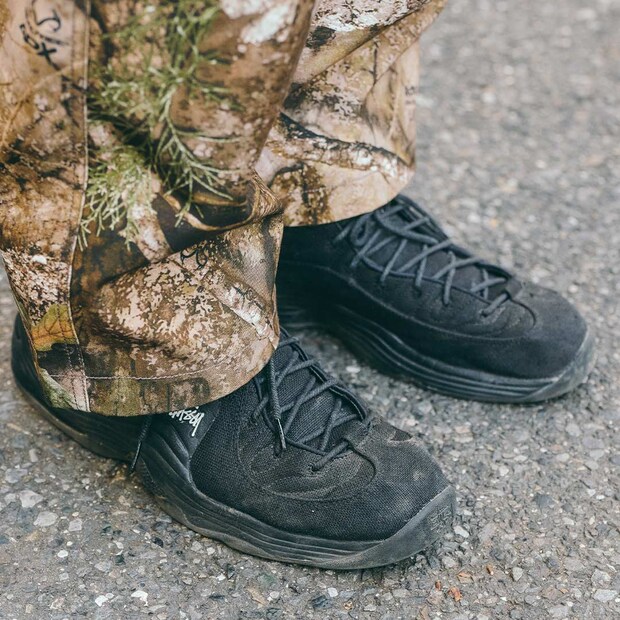 足元は『ナイキ』と『ステューシー』のビッグコラボスニーカー。強めな柄ボトムスを程よく落ち着かせてくれる。
