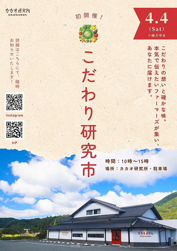 The post 【飯塚】4月4日(土)、カカオ研究所で「第1回 こだわり研究市」が開催されます。 first appeared on 筑豊情報マガジンWING.