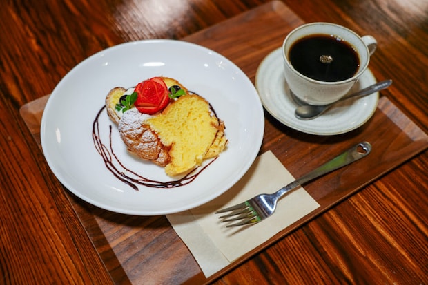 食後はふわっふわのシフォンケーキと、マスターが丁寧に淹れてくれたコーヒーで一息。