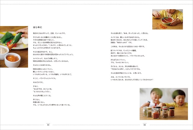 同書では、子どもでも安心して食べられる、身近な「8種類のスパイス」を活用した100ものレシピを大公開! 近所のスーパーで手に入るスパイスを最低2種類組み合わせるだけで、いつもの食卓が驚くほど豊かに彩られます。