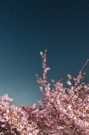 太陽が顔を出す直前、世界が静止する一瞬がある。冷たい朝の空気の中、凛とそびえる富士山と、それを包み込むように咲き誇る桜。夜明け前の静寂と安らぎ、朝へと移り変わる希望、それを中央に佇む力強い富士山が肯定する。