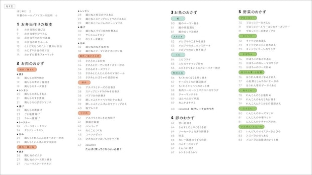 ほか、通年使える衛生ルールや猛暑の夏のお弁当作り、塾通いのお弁当のコツなども充実の一冊です。