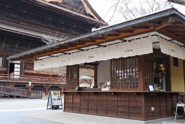 伊藤園は3 月19 日、信州善光寺(若麻績享則寺務総長)と連携し、初のフランチャイズ店舗「茶寮 伊藤園 善光寺店」を善光寺境内にオープンした。