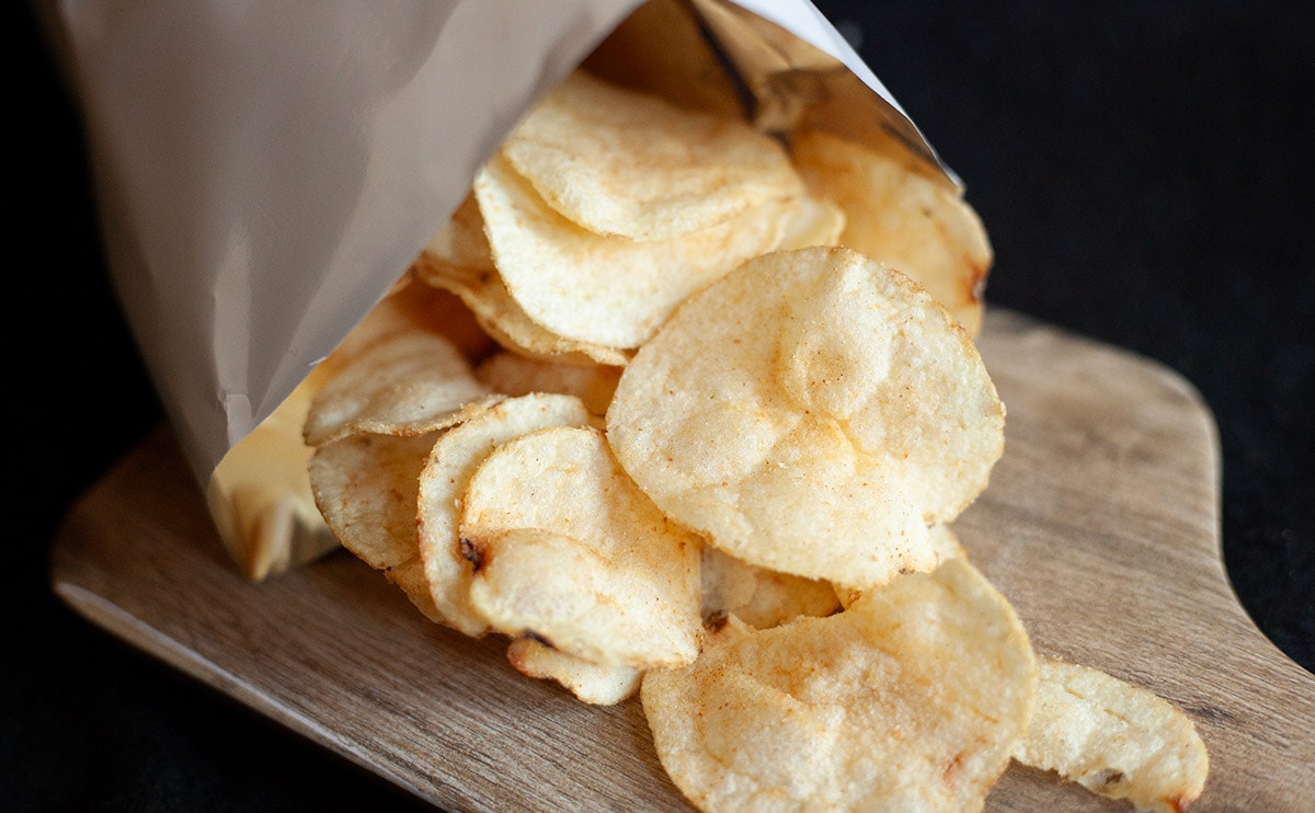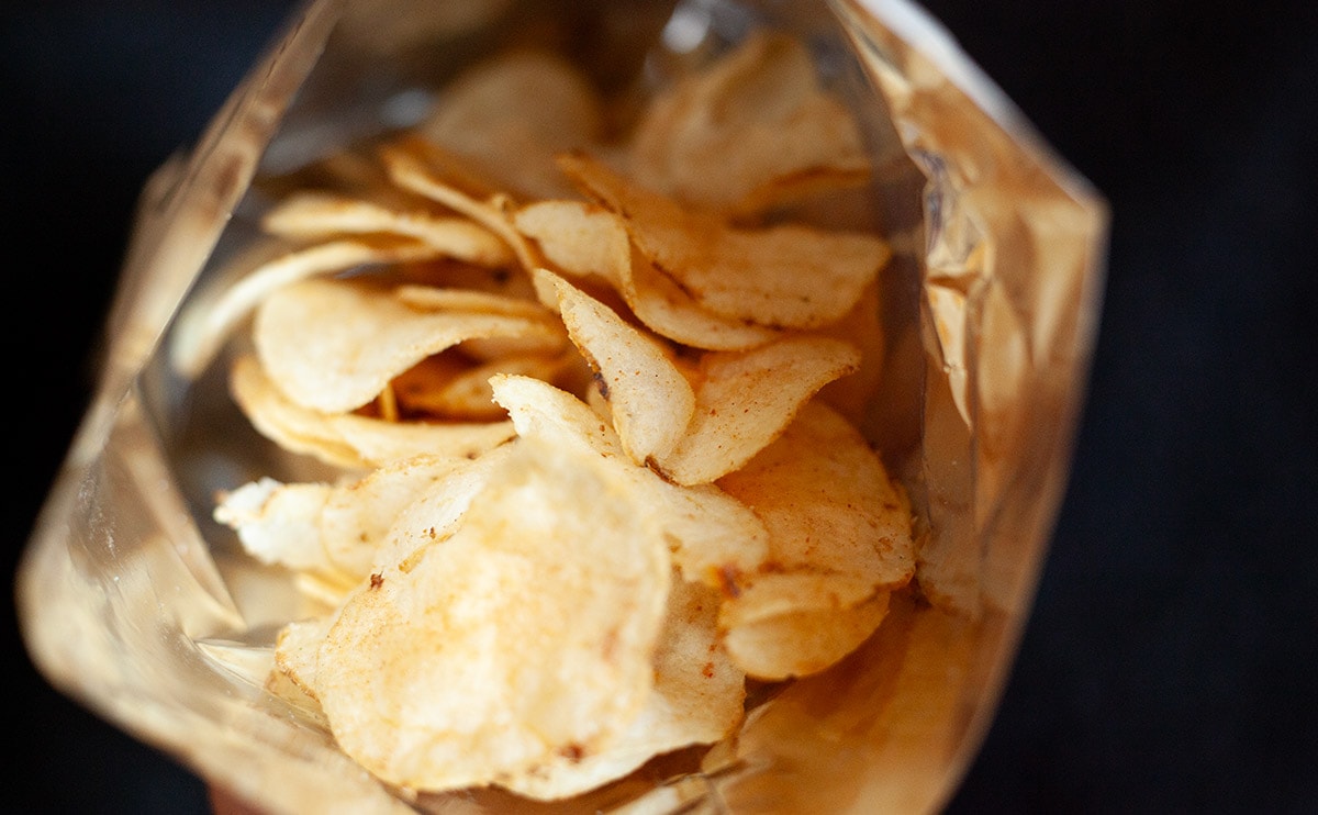 ファミリーマートの説明にもあったとおり、開けた瞬間から強烈なにんにく臭が……! ガーリック味のポテチはいくつかあるけれど、群を抜いて強烈です。