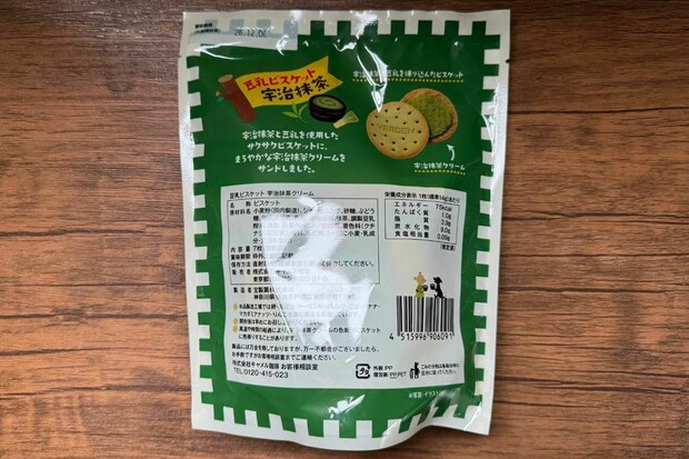 商品名:豆乳ビスケット 宇治抹茶クリーム