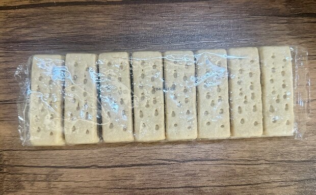 中には長方形のショートブレッドが8本入っています。個包装ではないため、開封後は早めに食べるのが良いでしょう。