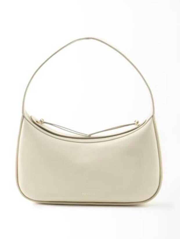 持つだけでモダンなスタイリングが完成するバッグ。削ぎ落されたミニマルなデザインがお気に入り。オフホワイトでなじみがいいのもポイント。バッグ¥69,300(ネオアス/全てドゥーズィエム クラス 青山店)