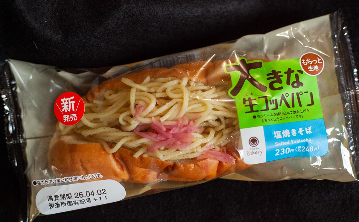 2026年3月31日(火)、ファミリーマートは、「大きな生コッペパン(塩焼きそば)」(税込248円)という新商品を発売しました。