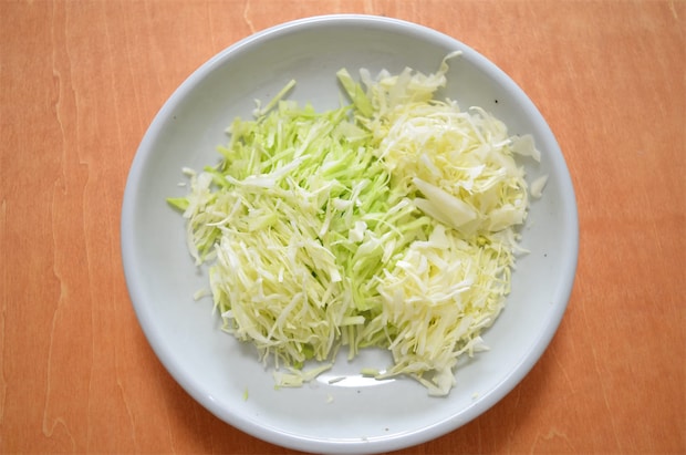 1. キャベツを千切りにして、レンジに1分30秒かけ、少し柔らかくして冷ましておく。