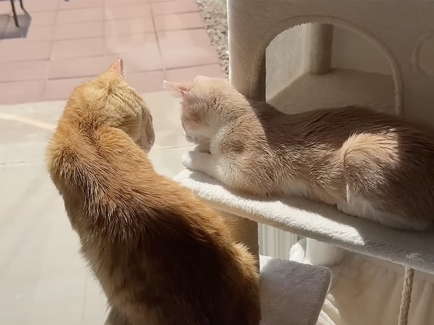 最初はキャットタワーの上下で、