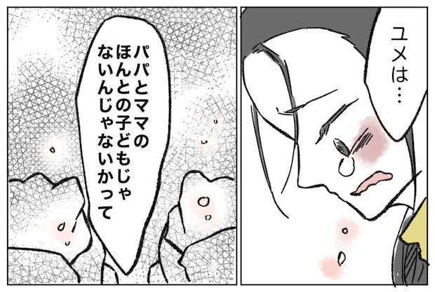 そして、力強くこぶしを握り締めると「ユメは・・・パパとママのほんとの子どもじゃないんじゃないかって」そう言って、ぽろぽろと涙を流しました。