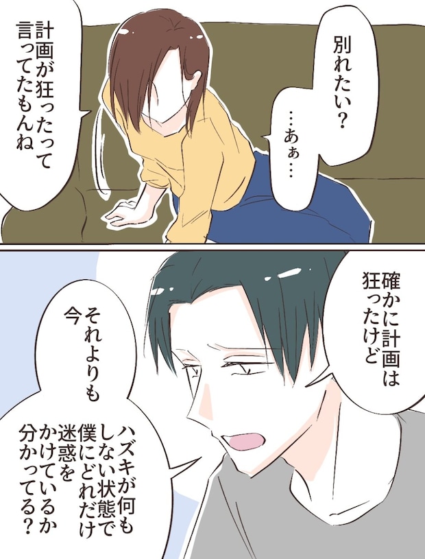 「別れたい?・・あぁ・・計画が狂ったって言ってたもんね」と答えると、「確かに計画は狂ったけど、それよりも今、ハズキが何もしない状態で、僕にどれだけ迷惑をかけているか分かってる?」と言い出すリヒトさん。