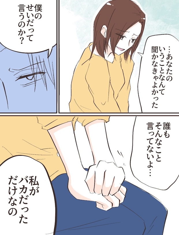 「・・あなたのいうことなんて聞かなきゃよかった」と言うと、「僕のせいだって言うのか?」と詰め寄るリヒトさんに、「誰もそんなこと言ってないよ・・私がバカだっただけなの」とリヒトさんに言いました。