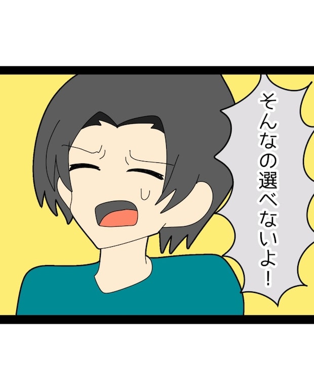 「選べないよ!」とかずまさんは困惑状態。長年、母から深い愛情を受けてきた彼にとって、その生活と決別するのは簡単なことではありません。