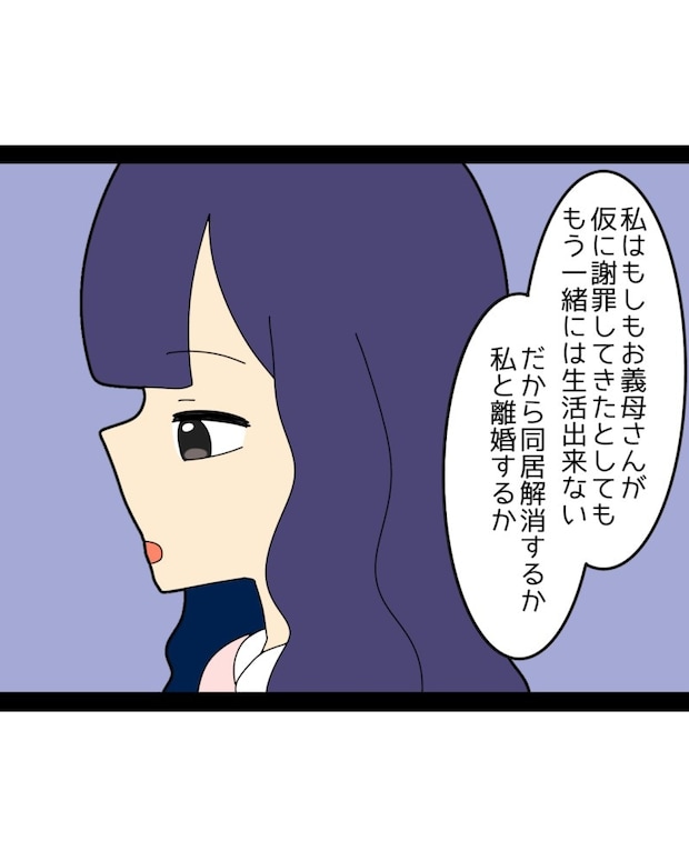 かずまさんに究極の選択を突き付けるみゆさん。義母が謝ってきたとしても同居はしない。みゆさんの強い決意が伝わってきます。