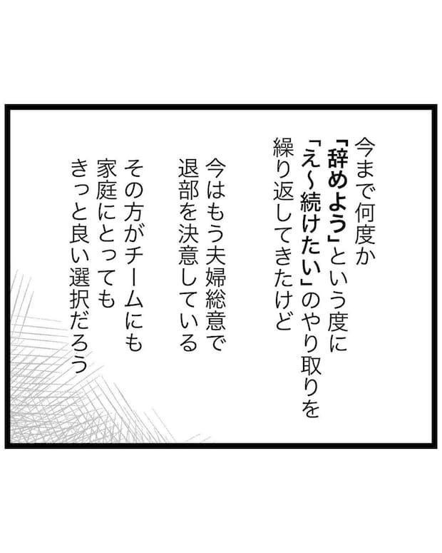 夫婦で退部を決めたものの、息子への伝え方に悩んだもっつんさん。