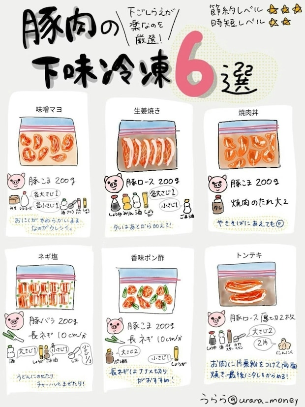 うらら(@urara_money)さんが投稿したある画像です。節約のため、大容量で安いお肉があったら、買ってしまう人もいるでしょう。しかし、買ったはいいものの、そのまま冷凍にしてしまっている人もいるはず…。