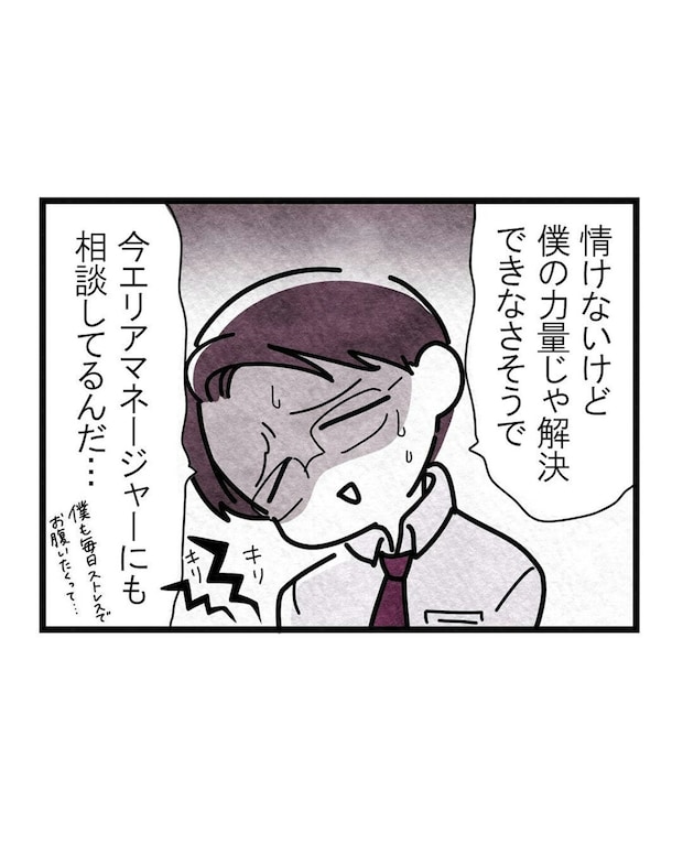 店長も自分では対応は難しいと判断して、エリアマネージャーに相談していました。エリアマネージャーが対応してくれるといいですね。