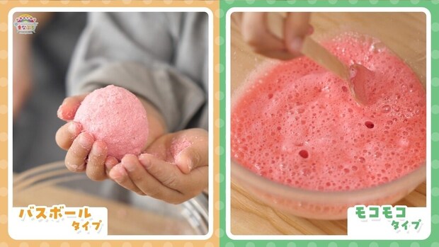 2種のパウダーを混ぜて泡を作ったり、丸めて固めればバスボムに。お風呂時間を"遊びながら学ぶ"体験へと広げ、親子のコミュニケーションが生まれるきっかけを提案します。