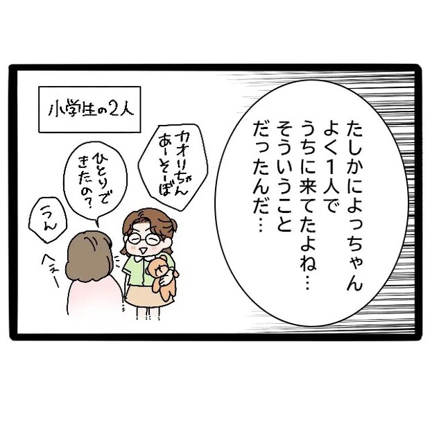 「たしかによっちゃんよく1人でうちに来てたよね・・。そういうことだったんだ・・」と小学生のときによく1人で遊びに来ていたよっちゃんを思い出しました。あれにはそんな事情があったなんて・・。