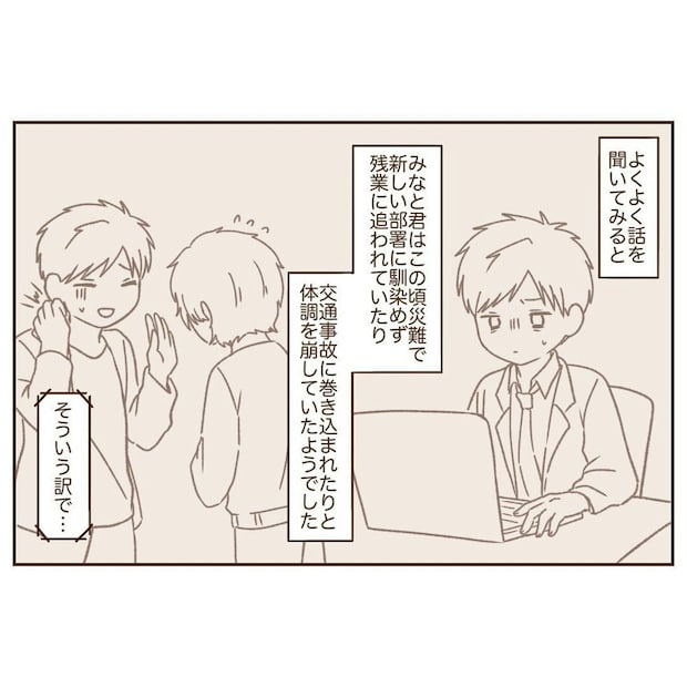 実は、みなとくんが連絡できなかった2週間、交通事故に遭ったり、残業が続いたりと、とても大変な日々を過ごしていたのです。