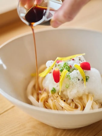 「by age 18」は、うどん県⺠10,000⼈以上が訪れ、昨年マレーシアに2号店もオープンした⾹川県のプラントベース・グルテンフリーうどんレストラン。