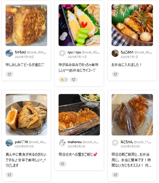 つくれぽ(つくりましたフォトレポートのこと)にも、「簡単なのに見栄えがいい」「朝の忙しい時間でもすぐ作れる」「お弁当にちょうどいいサイズ感」など、手軽さと使い勝手のよさを評価する声が多数届いています。
