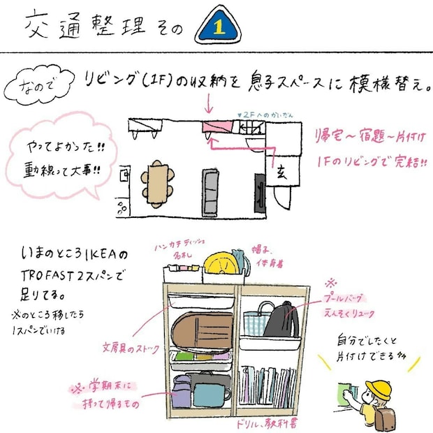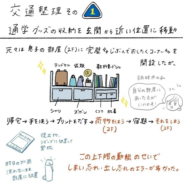 そもそも持ち物が多いので、準備と片付けの動線を変えた