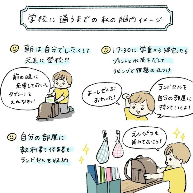 はじめてのことに不安を感じるのは、誰でも一緒。だからこそ、経験した人のお話はとても参考になりますよね。当てはまる部分とそうでない部分をうまく使い分けて、取り入れてみてはいかがでしょうか。なんとなく「小学1年生の生活はこう」というヒントがわかるだけでも、安心ですよね。