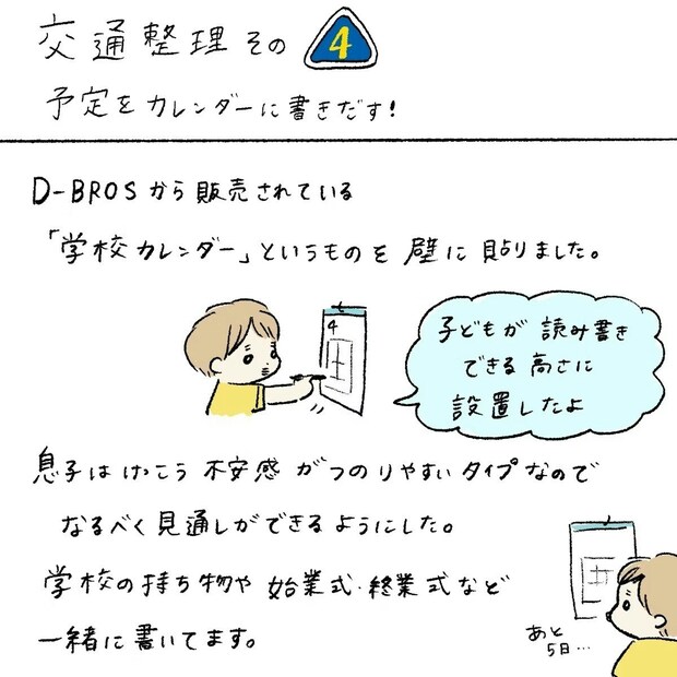 子供に関わる予定は紙のカレンダーに書いて予定が見通せるようにした。これでようやく曜日の感覚がついてきた。