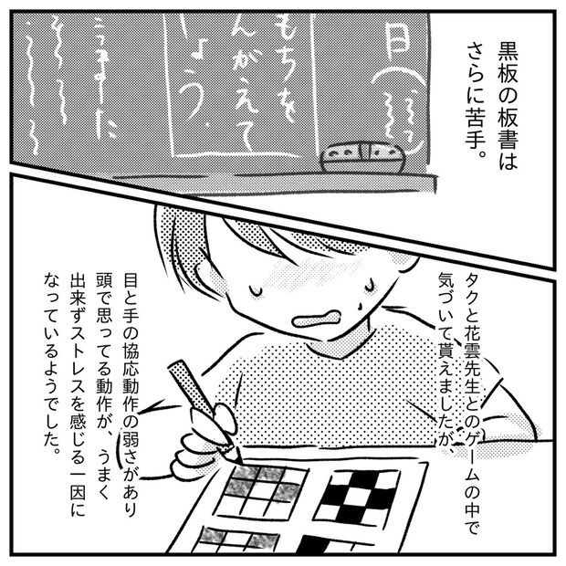 担任の先生やスクールカウンセラーの話を聞くうちに、わが子の苦手なことが具体的に見えてきました。字を書くことや、黒板を見て写すようなタスクの多い作業が得意ではないようです。