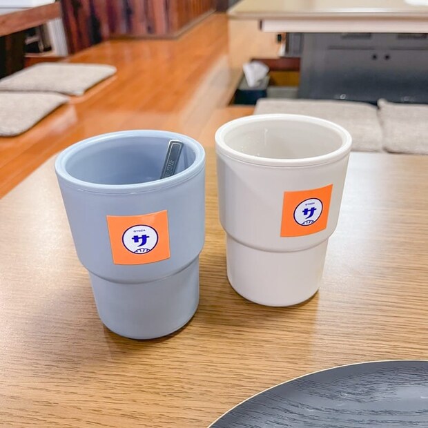 この薬味入れやコップなど、あちこちにあるお店のロゴマークは店主さんの娘さんがデザインされたそう。