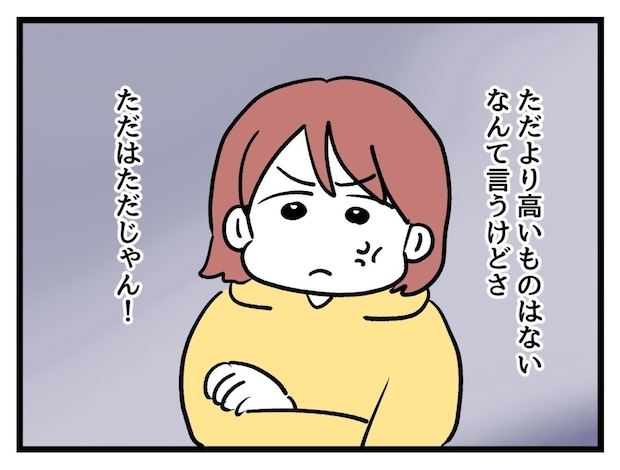 “タダ”のものをこよなく愛するたまみ。ある日、保育園のママ友の娘が着ていたカーディガンがお下がりのブランドものだと知ったたまみは、「ずるい」と言い出しおねだりします。