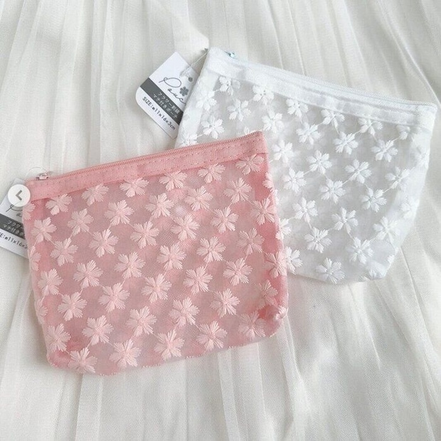 あーやんさんがセリアで購入したのは、桜のような花の刺しゅうが可愛い「フラワー刺繍 マチ付きポーチ」。約11×16×3cm(縦×横×マチ)とほどよいサイズ感で、バッグにもすっきり入るのだそう。メッシュ素材で中身がわかりやすいのも、おすすめポイントのようです◎