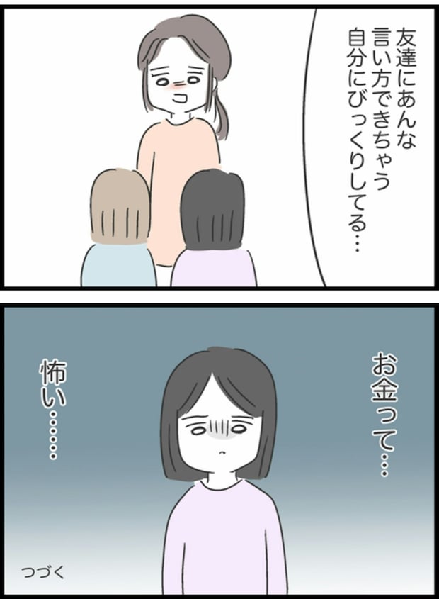 そんなとき、大学の友人が「返してほしい」とはっきり伝える姿を目にし、すみれは衝撃を受けます。お金が絡むと人の本質が見えること、貸し借りは関係を揺るがすこともあるのだと実感しました。