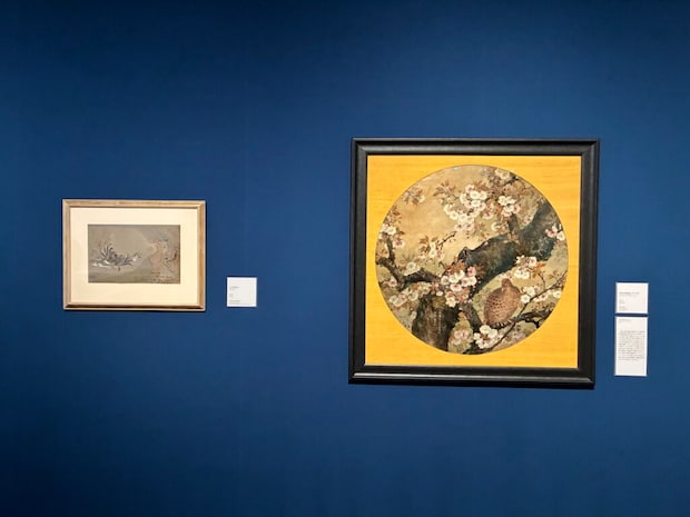 写真右の作品、これは渡英し描いた最初期の作品といわれています。細やかな花びらの表現など日本画の技術はイギリスでも多くの人々を魅了していきます。