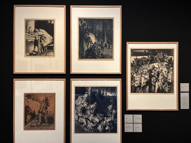 14年ぶりに帰国した石橋は、第一次世界大戦下のベルギー難民を救うためこれらの版画作品の展覧会を行い精力的にチャリティー活動を行ったそうです。