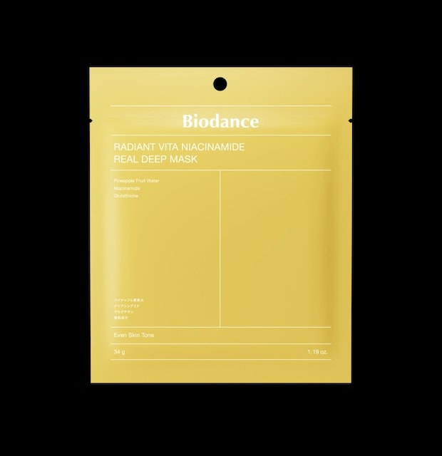 くすみや質感を整えてワントーン明るい肌へと導きます。ラディアントビタナイアシンアミドリアルディープマスク〈黄/4枚入り〉 2,640円