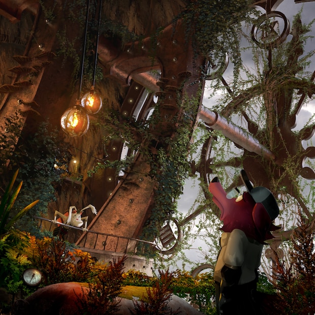 つぎの日。ニーナが時計台にあそびにきました。