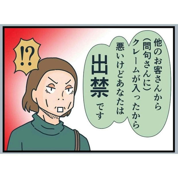 問句さんの問題行動は、今回に限ったことではありませんでした。他のお客さまからもクレームが入ったのをきっかけに、店長は「出禁」という、最終手段を行使します。