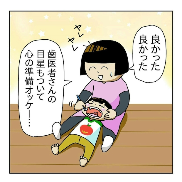しかし、まだ揺れは小さいため、ほぺろうくんは落ち着いています。夫婦で乳歯の抜歯をどうするか話し合いますが、結論が出ません。